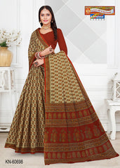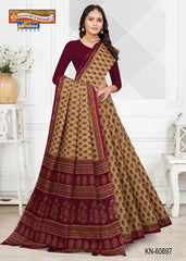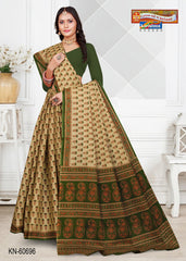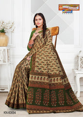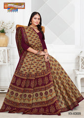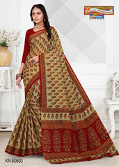 "Pure Cotton Mulmul (Medium Soft) Saree With Pretty Floral Print And Delicate Border Attached Blouse Pc.
