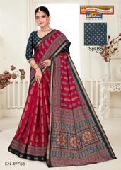 At Karishma Sarees, we take pride in being your one-stop destination for all your cotton saree needs. Our extensive collection features regional specialties such as ikat, bandhej, handloom, batik, and abstract prints, all conveniently available under one roof. This diversity simplifies your shopping experience, making it easy to find the perfect saree that suits your style.