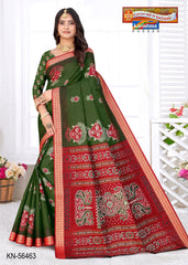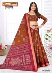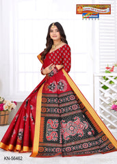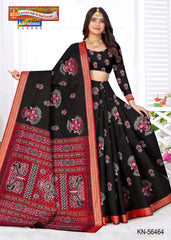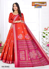 "Pure Cotton Malai (Soft) Saree With Beautiful Traditional Print Attached Blouse Pc.