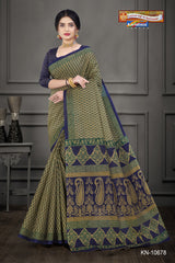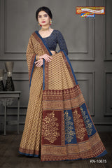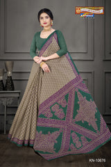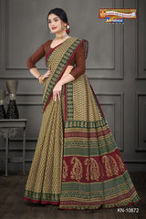 "Pure Cotton Mulmul ( Stiff ) Saree With Small Butti & Small Floral Border Attached Blouse Pc.