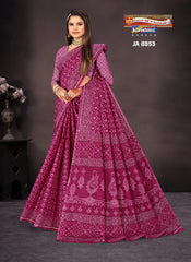 "Pure Cotton (Medium Soft) Saree With Modern Design Blouse Pc Attached. The Saree comes with all over printed design made in Pure Cotton Fabric with Design Border and Pallu Design.