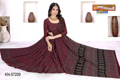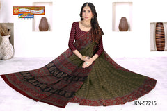 "Pure Cotton Muslin (Soft) Saree With Simple Print And Unique Big Border Blouse Pc Attached The Saree comes with the Traditional style Colour Mix in Soft Cotton Fabric along with highlighted designs printed on top and a Thick Zari Border all around.
