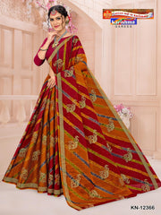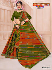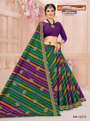 "Traditonal Leheriya Style With Elephant Design Pure Cotton ( Masleen) Blouse Pc Attached. The Saree comes with the Traditional style Colour Mix in Soft Cotton Fabric along with highlighted designs printed on top and a Thick Zari Border all around.