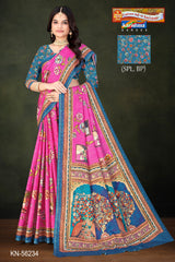 At Karishma Sarees, we take pride in being your one-stop destination for all your cotton saree needs. Our extensive collection features regional specialties such as ikat, bandhej, handloom, batik, and abstract prints, all conveniently available under one roof. This diversity simplifies your shopping experience, making it easy to find the perfect saree that suits your style.