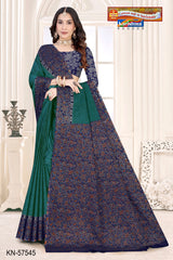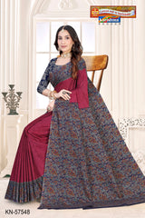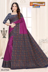 "Pure Cotton (Soft) Muslin Saree With Beautifyl Big Border Blouse Pc Attached The Saree comes with the Traditional style Colour Mix in Soft Cotton Fabric along with highlighted designs printed on top and a Thick Zari Border all around.