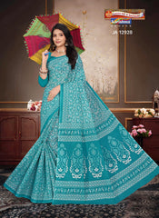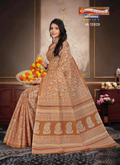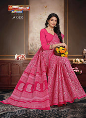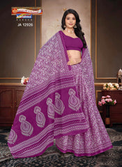 "Pure Cotton Mulmul (Medium Soft) Saree With Paisely Design Allover Attached Blouse Pc.