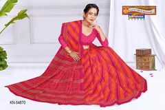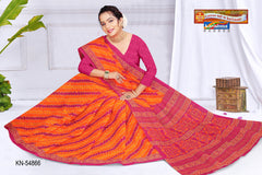 "Pure Cotton Mulmul (Medium Soft) Saree With Traditional Leheriya Design Attached Blouse Pc.